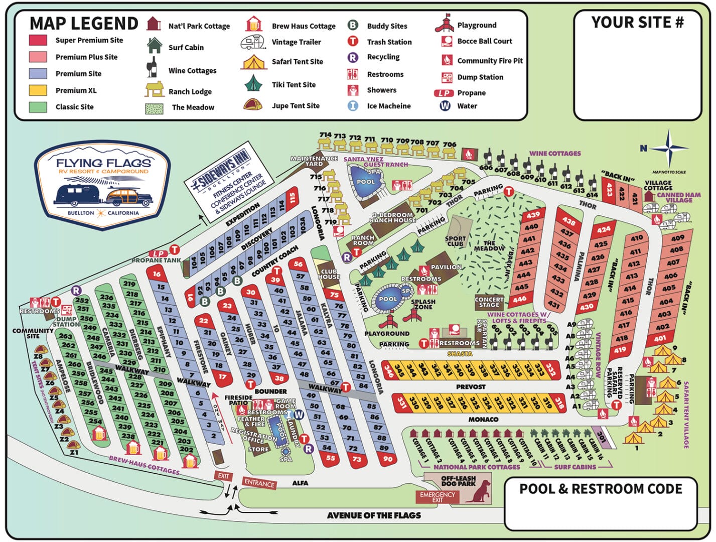 With a s’more in your hand and a brand new friend at your side, you might not remember all the things that inspired you to visit Flying Flags in the first place. Like the fact that it’s surrounded by miles and miles of lush, Central Coast vineyards. Or the fact that it’s just down the road from an outrageously charming ostrich refuge. Or the fact that it’s on the edge of the village of Buellton—the home of split pea soup. Because when you’re at Flying Flags, you’ll see that these grounds create a village in themselves.